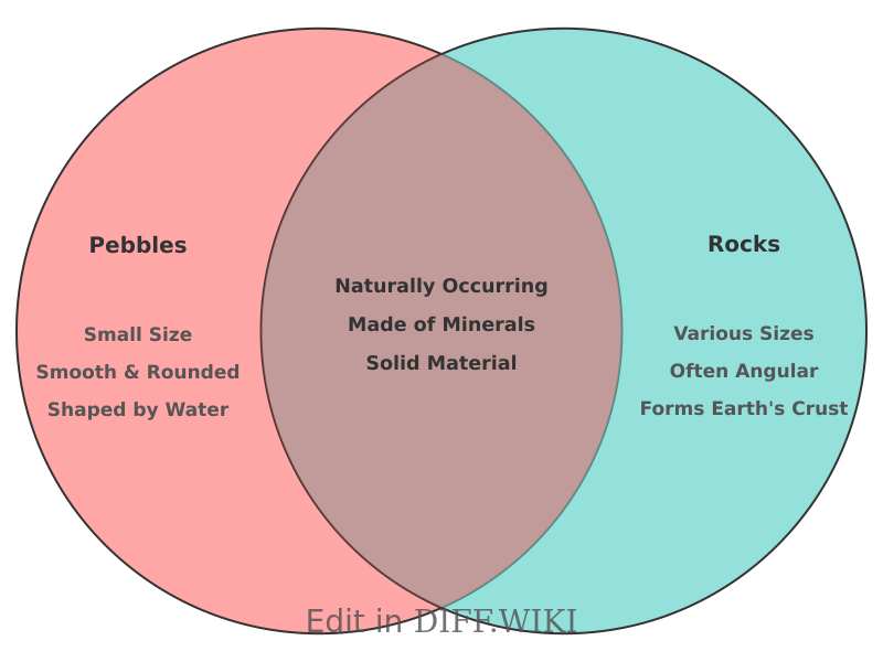 Venn diagram for Differences between pebbles and rocks