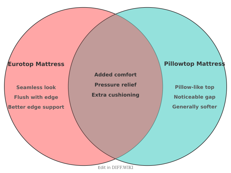 Venn diagram comparing Differences_between_Eurotop_Mattress and Pillowtop_Mattress